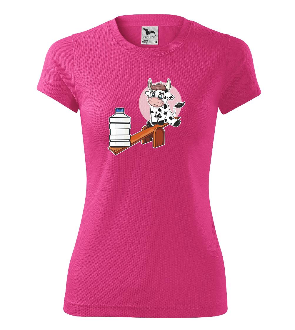 Tričko s kravou, skvelý darček napríklad pre kamošku. Krava na hojdačke.