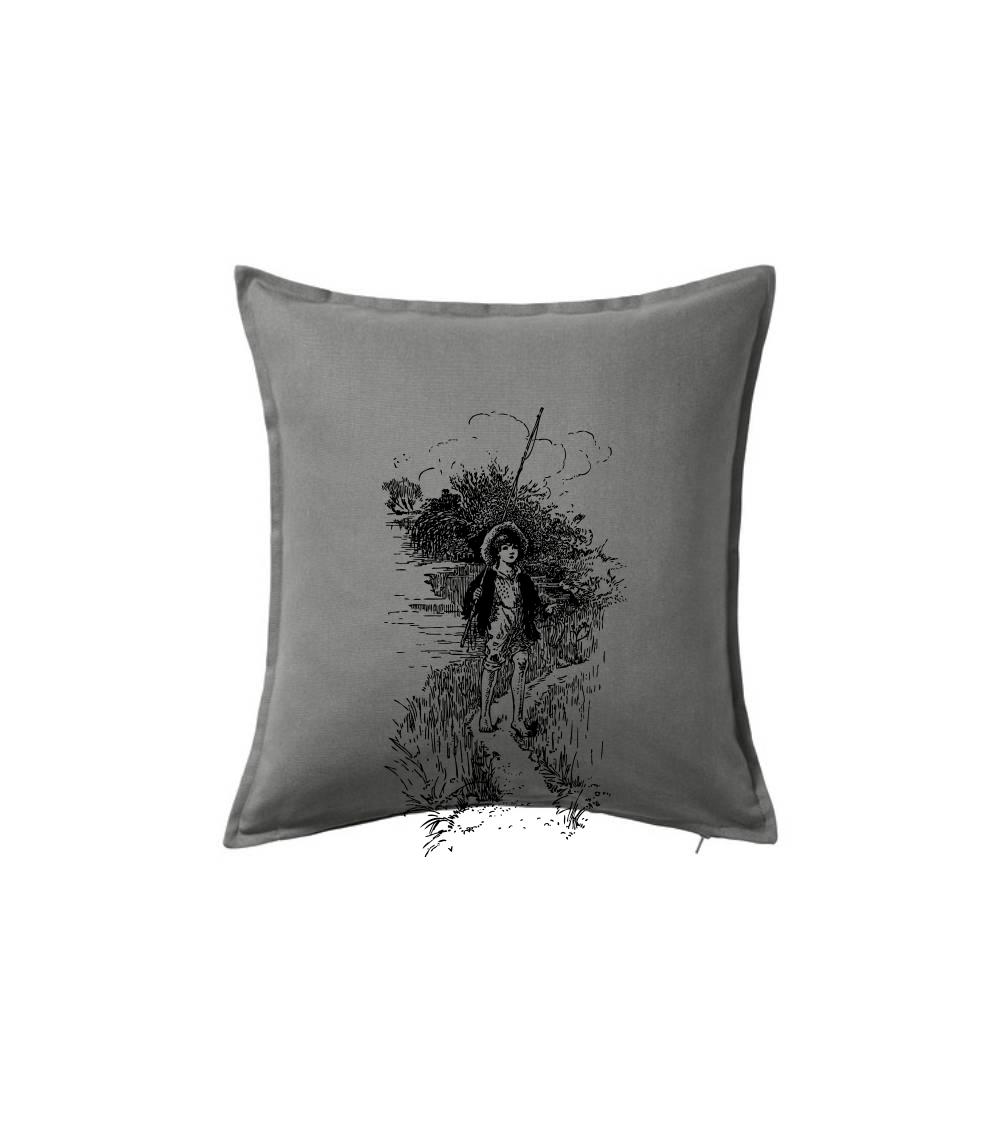 Kreslený chlapec s prútom
