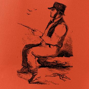 Kreslený pán s klobúkom na rybách