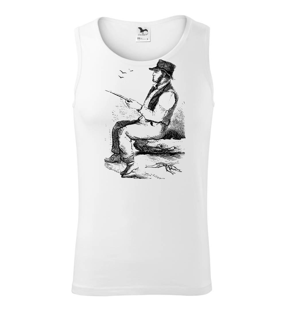 Kreslený pán s klobúkom na rybách