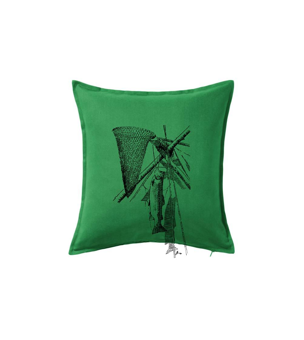 Kreslený podberák a chytená ryba