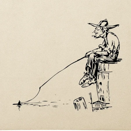 Kreslený rybár na pni
