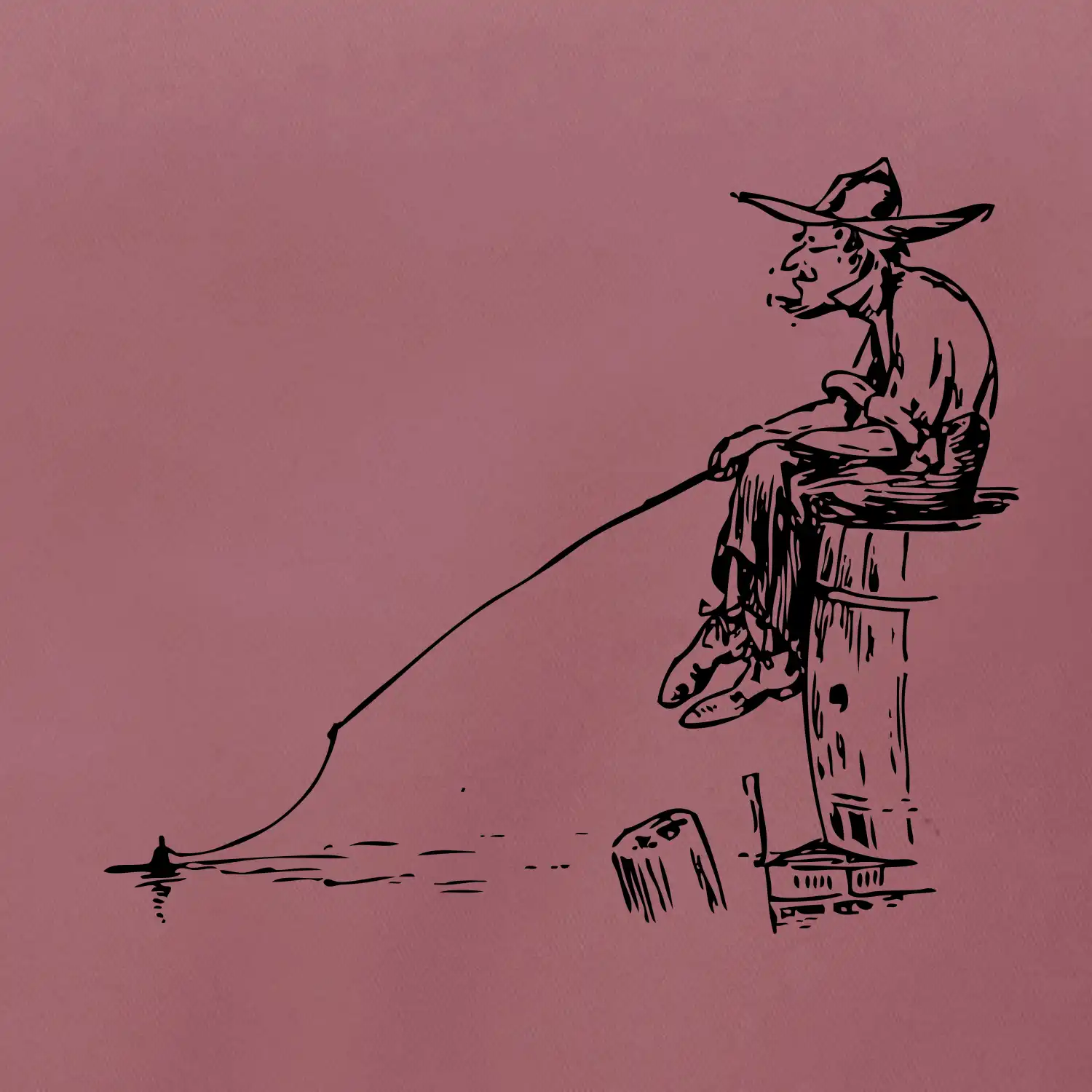 Kreslený rybár na pni