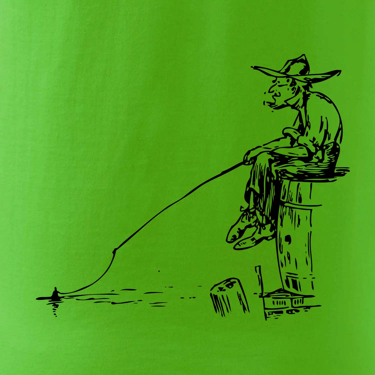 Kreslený rybár na pni
