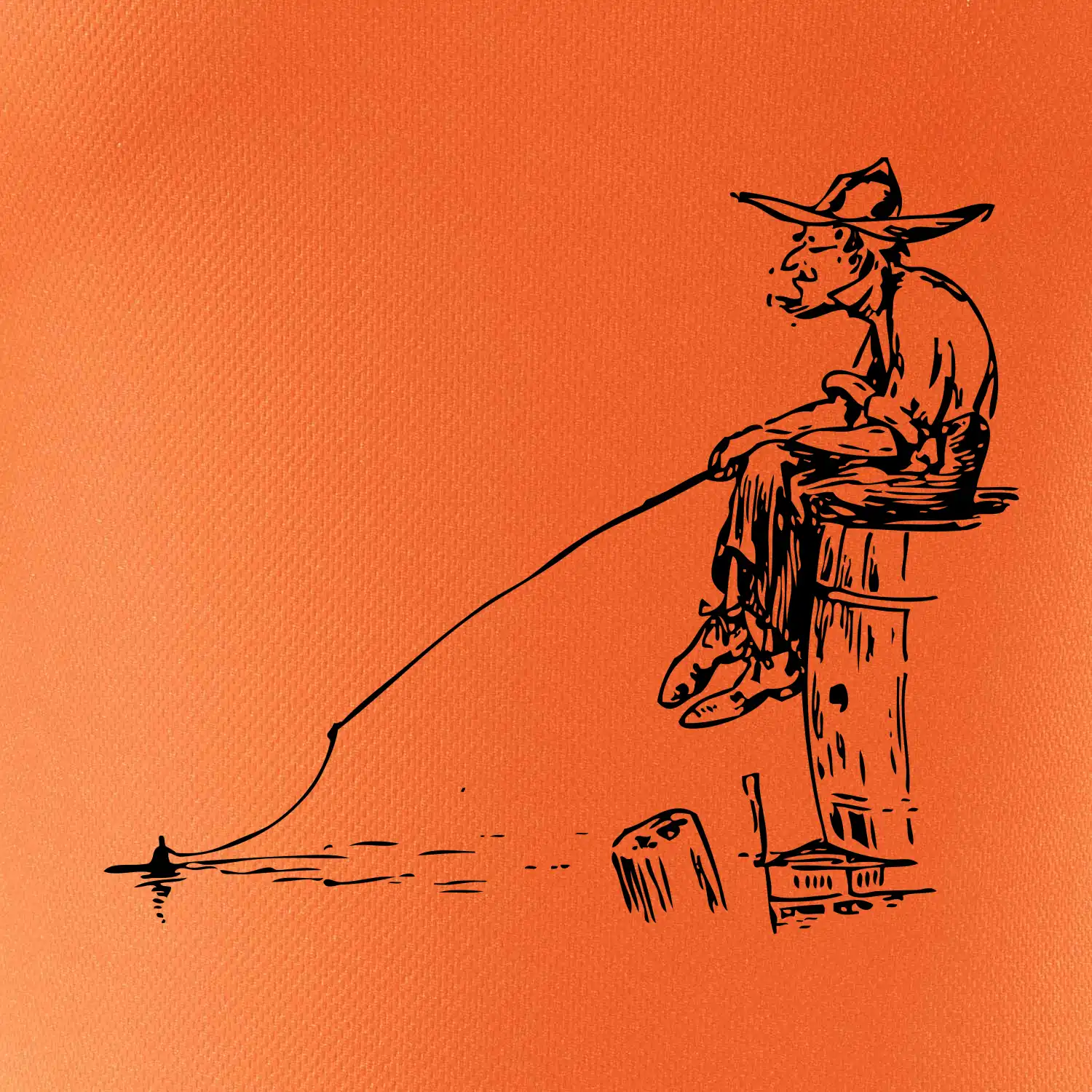 Kreslený rybár na pni