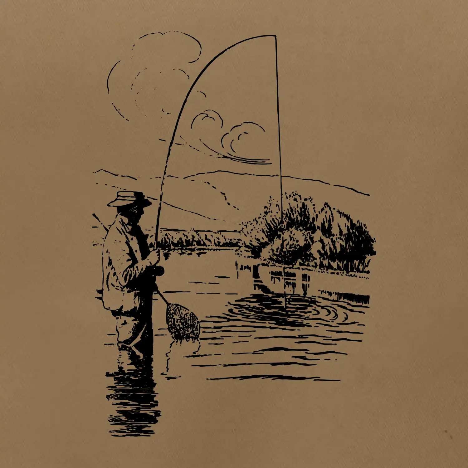 Kreslený rybár s podberákom