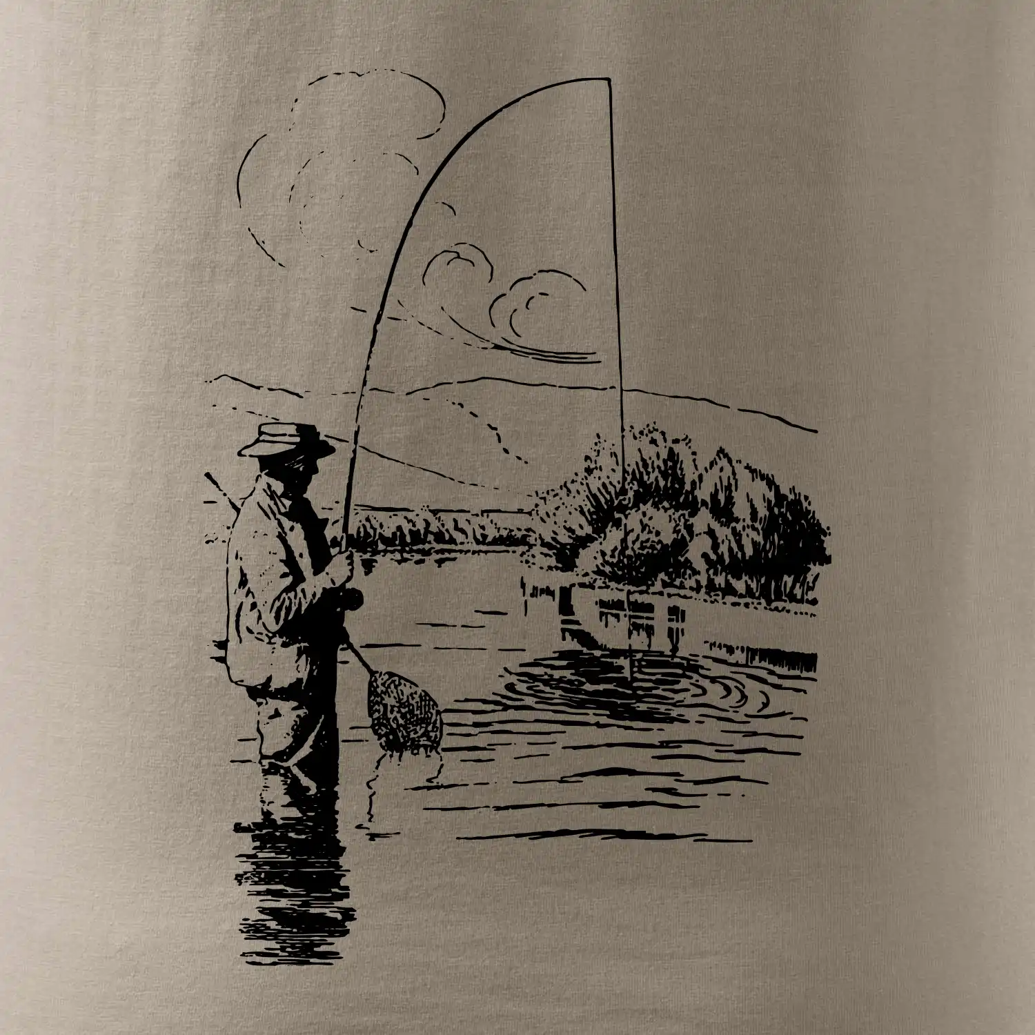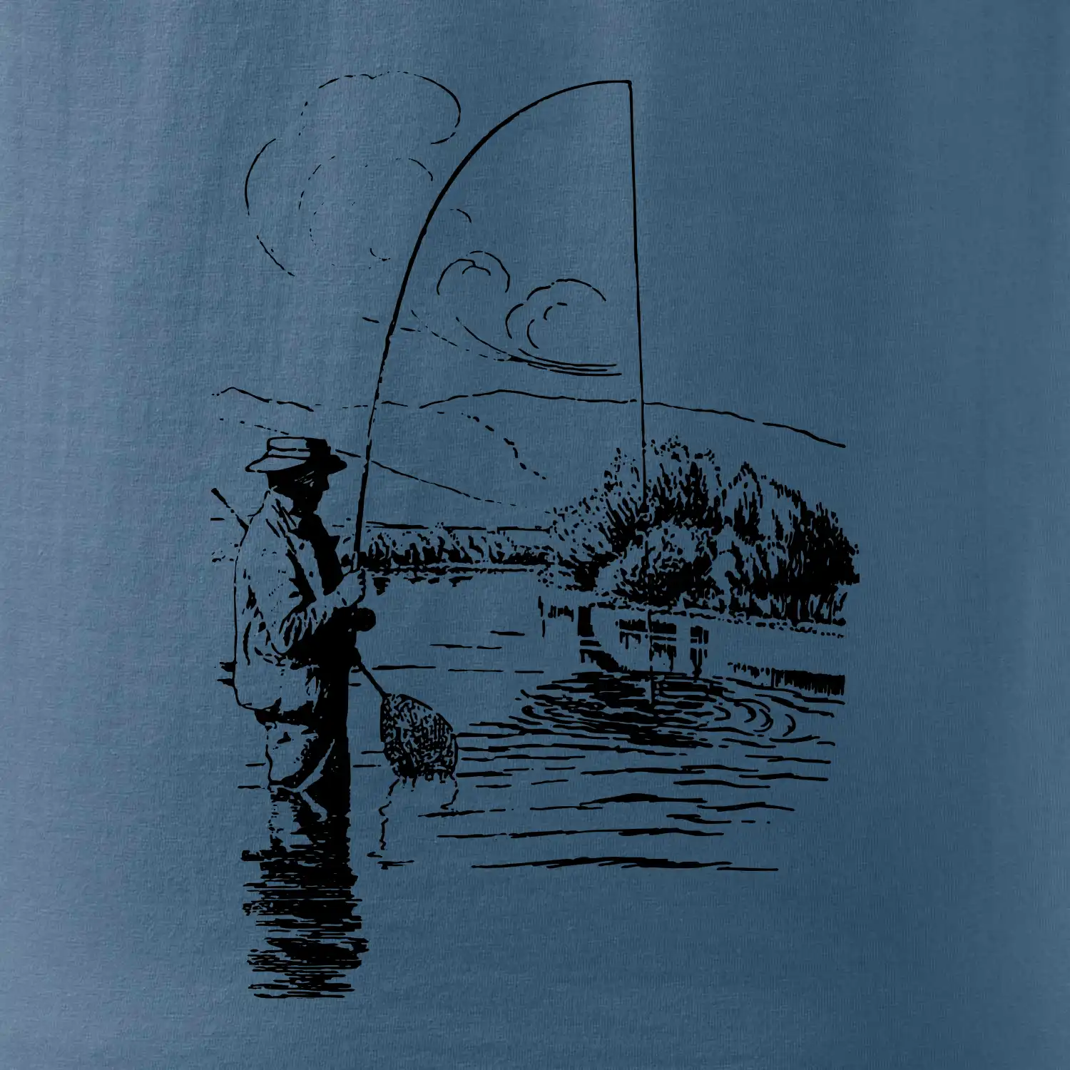 Kreslený rybár s podberákom