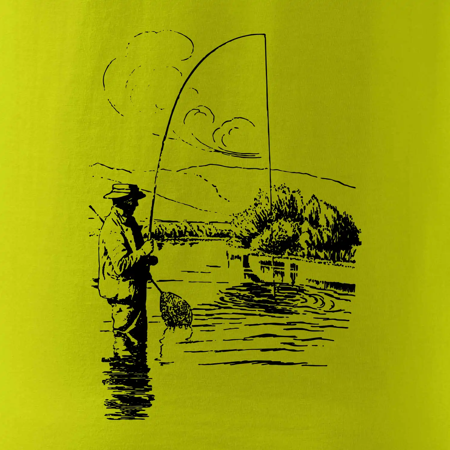 Kreslený rybár s podberákom