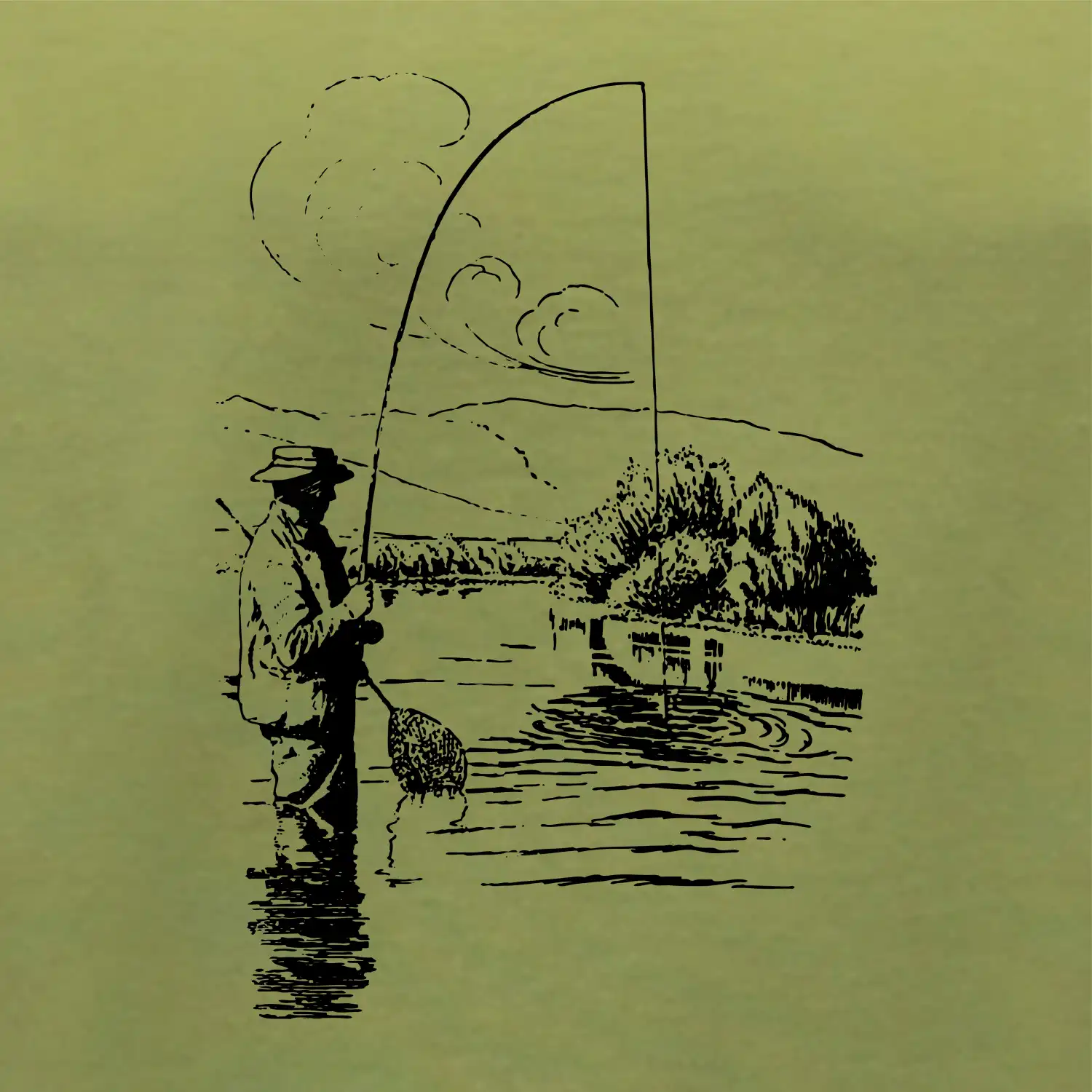 Kreslený rybár s podberákom
