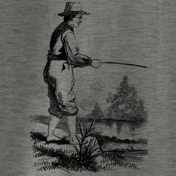 Kreslený rybár s vytiahnutými nohavicami