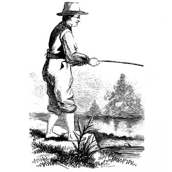 Kreslený rybár s vytiahnutými nohavicami