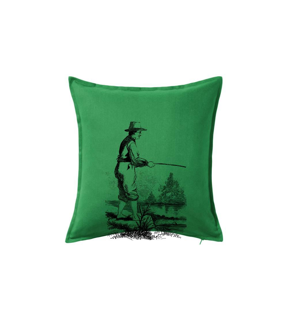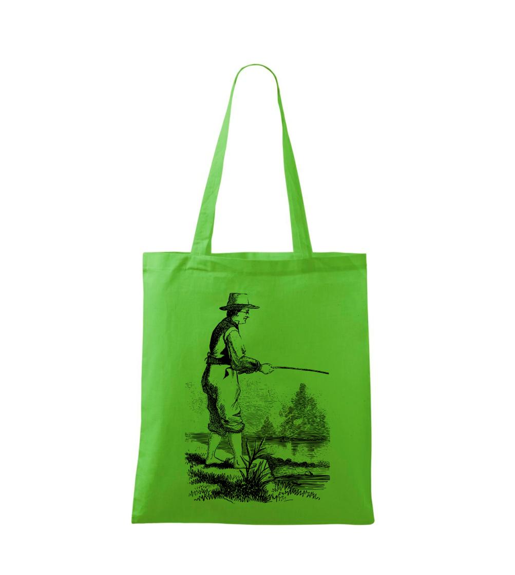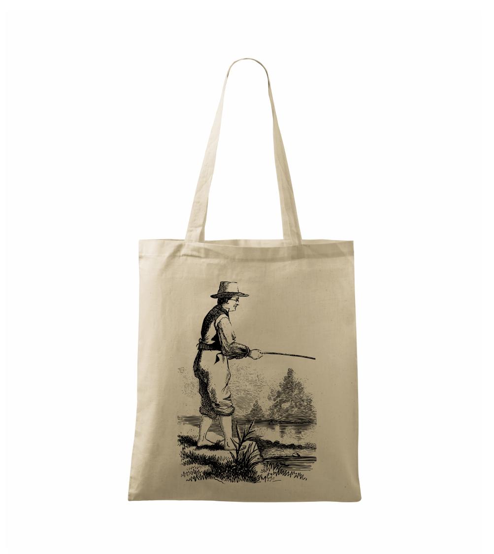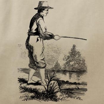 Kreslený rybár s vytiahnutými nohavicami