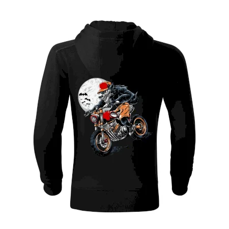 Kreslený vlk na motorke