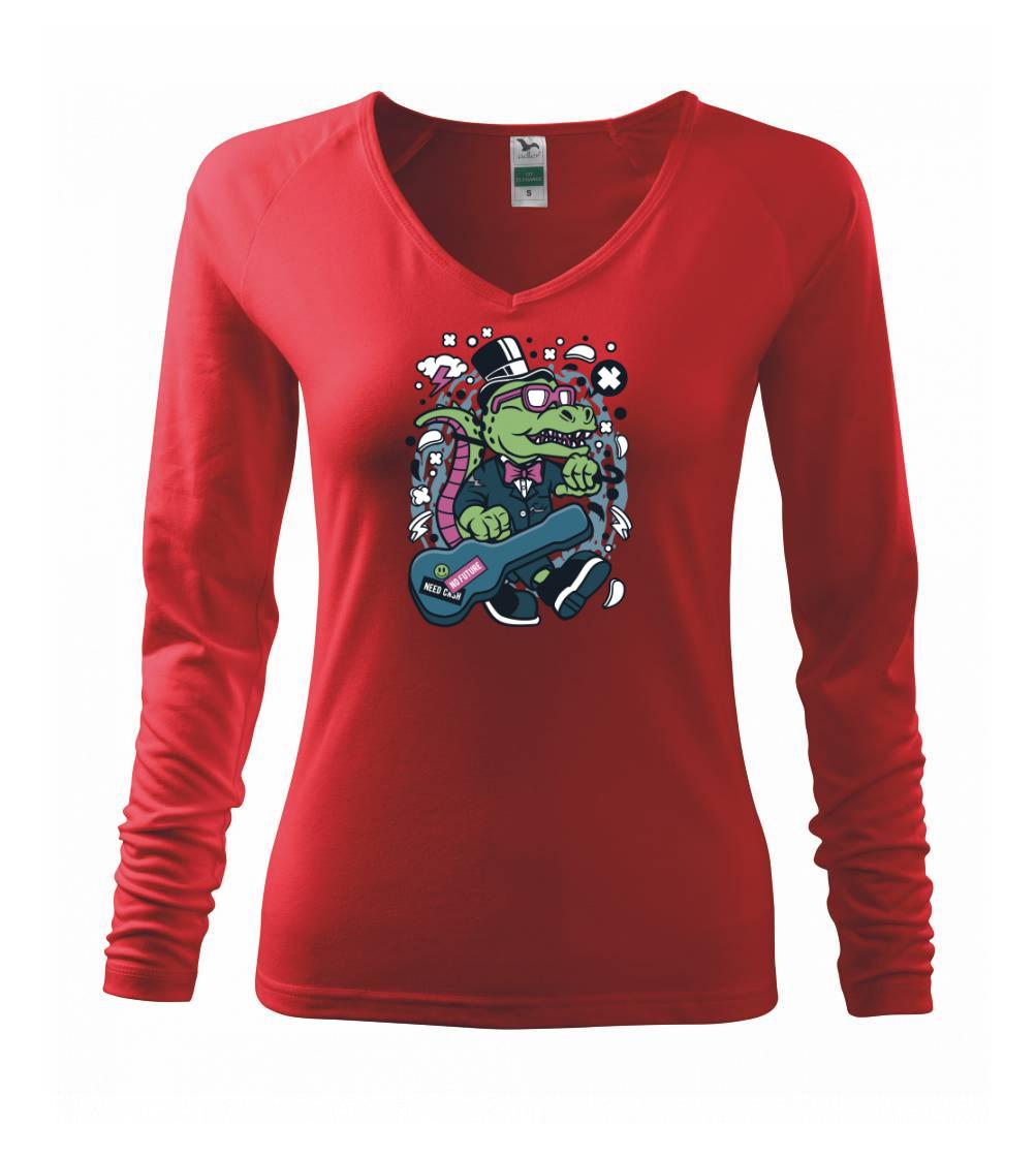 tričko pre gitaristu, na ktorom je krokodíl s gitarou. Ukáž, že vieš hrať lepšiu hudbu ako krokodíl, a že si poriadny rocker a zviera! Každý gitarista alebo hudobník, ktorému niečo hovorí gitara, by si mal toto tričko s gitarou zaobstarať.