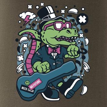 tričko pre gitaristu, na ktorom je krokodíl s gitarou. Ukáž, že vieš hrať lepšiu hudbu ako krokodíl, a že si poriadny rocker a zviera! Každý gitarista alebo hudobník, ktorému niečo hovorí gitara, by si mal toto tričko s gitarou zaobstarať.
