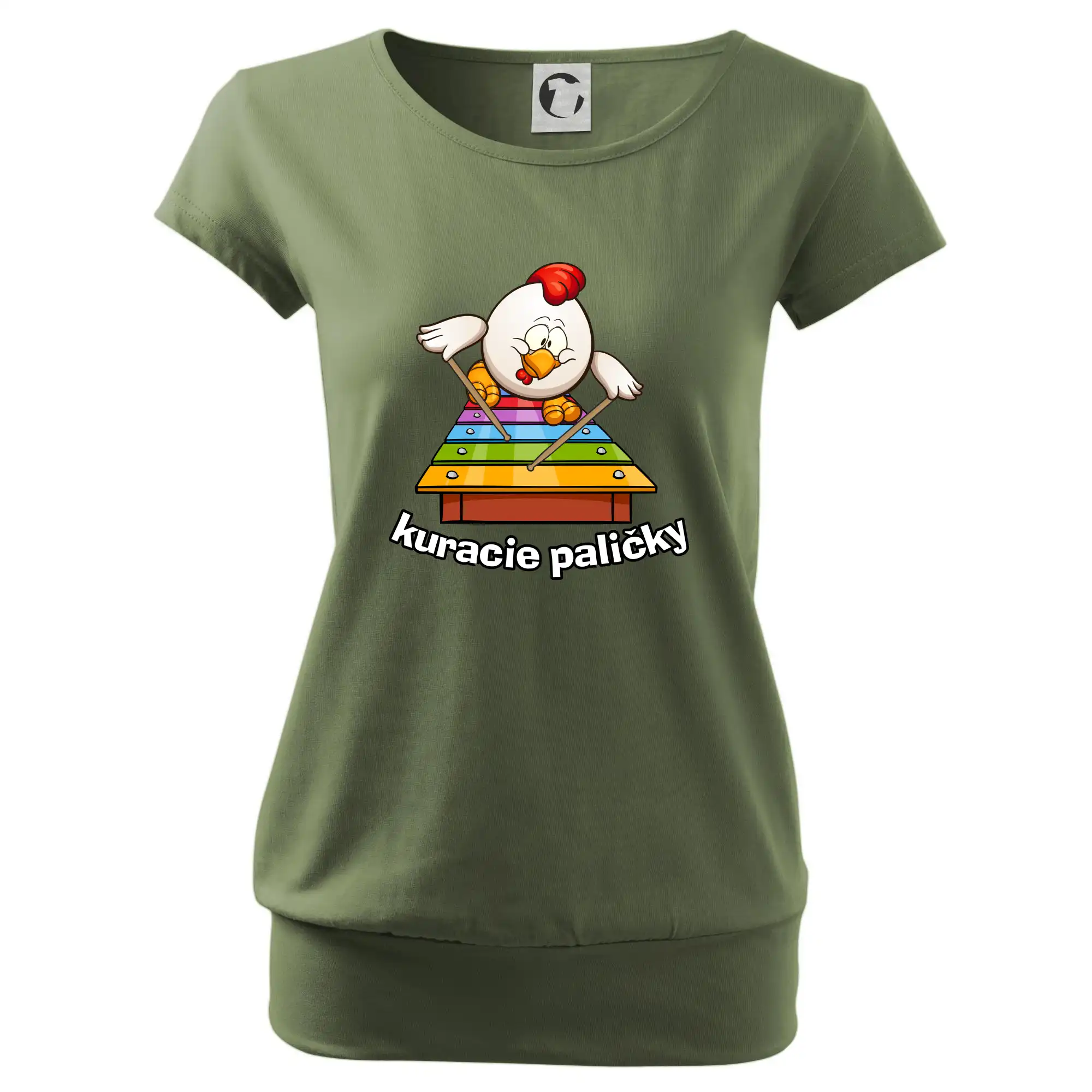 Trendové dámske tričko s veľmi krátkym rukávom, voľnejšieho strihu, v dolnom kraji všité do širokého lemu. Okrúhly priekrčník s úzkym lemom zo zhodného materiálu.