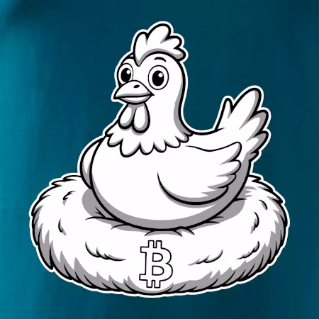 Kurča sediace na bitcoinovom hniezde