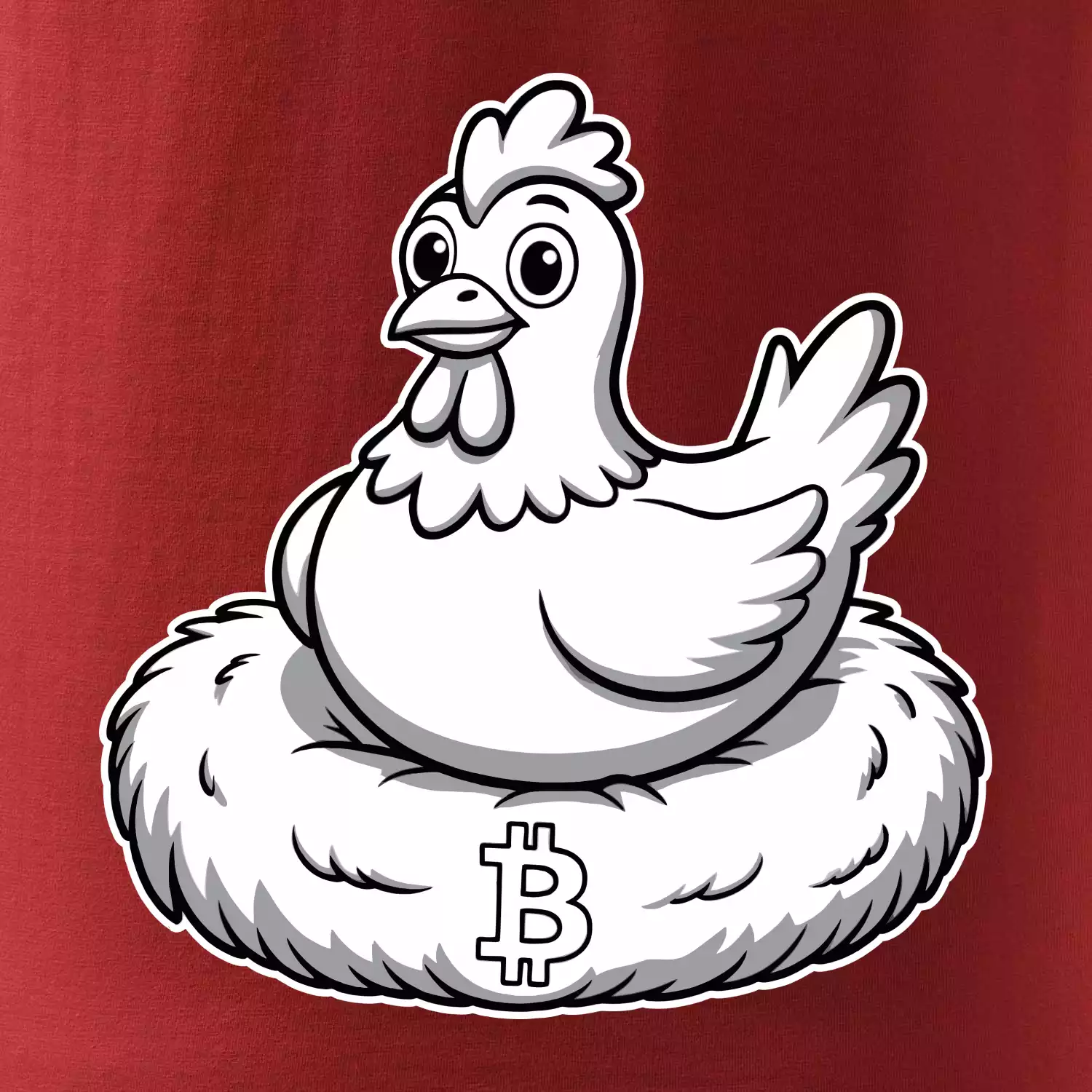 Kurča sediace na bitcoinovom hniezde