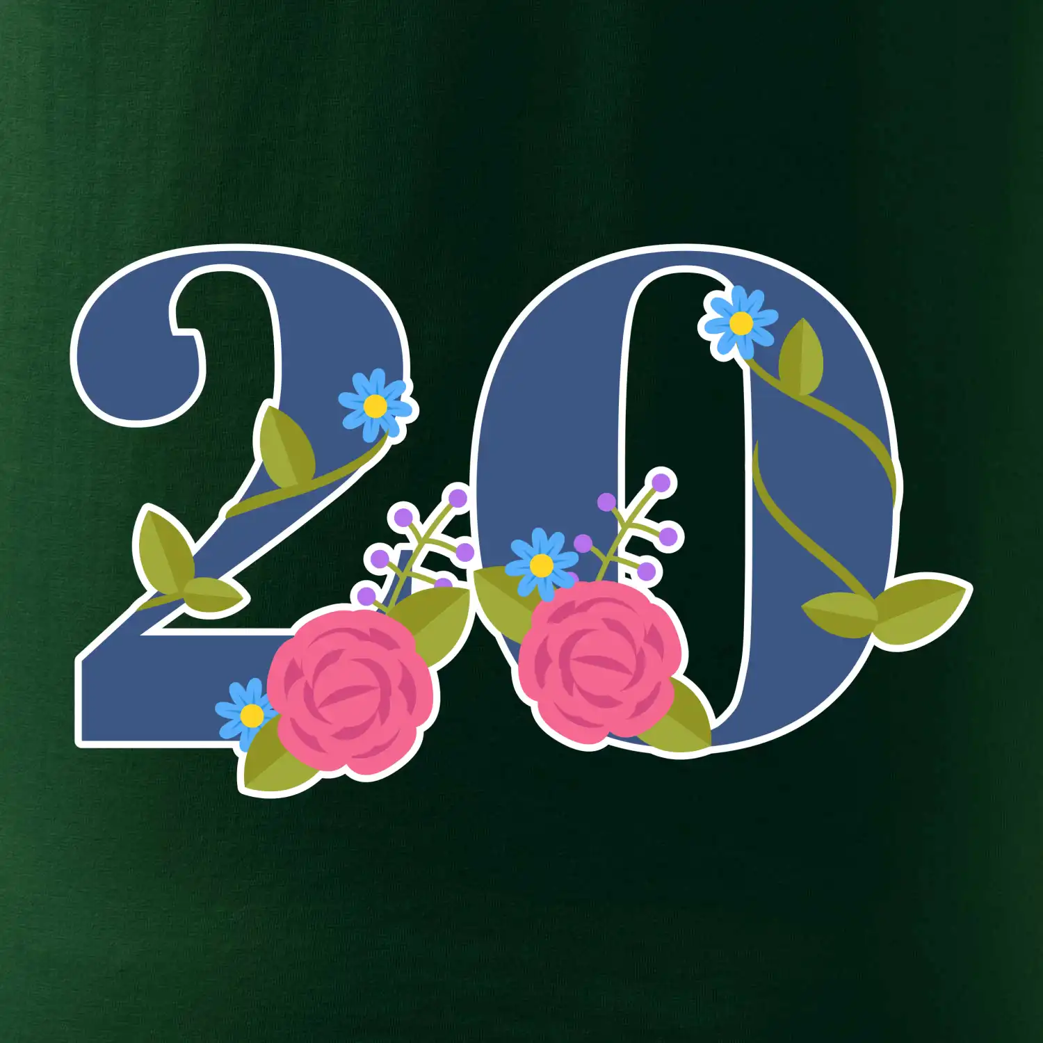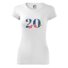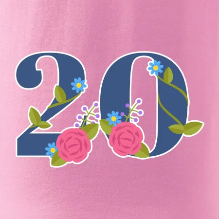 Narodeninové tričko pre oslávenca, ktorý oslavuje jubileum 20 rokov. Tričko, na ktorom je číslovka 20 s kvetmi. Darček k dvadsiatym narodeninám.