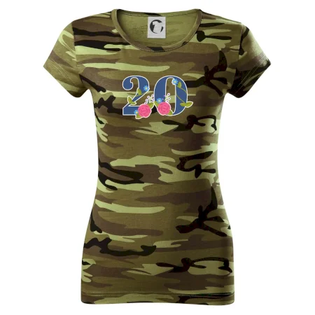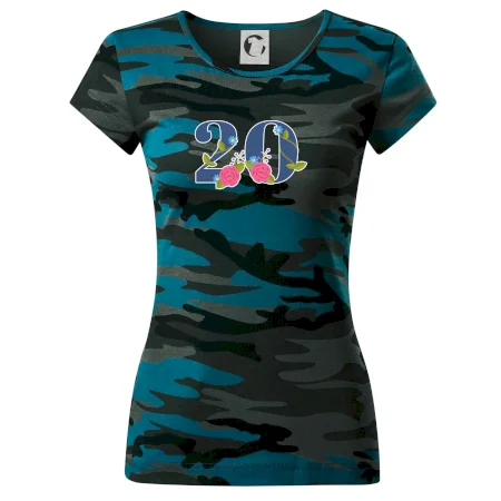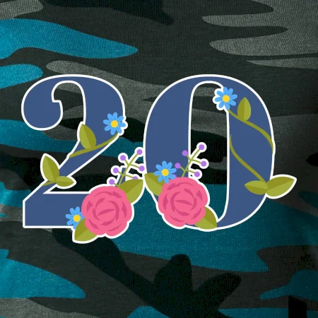 Narodeninové tričko pre oslávenca, ktorý oslavuje jubileum 20 rokov. Tričko, na ktorom je číslovka 20 s kvetmi. Darček k dvadsiatym narodeninám.