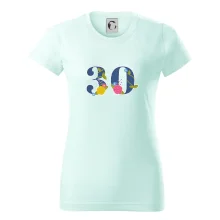 Narodeninové tričko pre oslávenca, ktorý oslavuje jubileum 30 rokov. Tričko, na ktorom je číslovka 30 s kvetmi. Darček k tridsiatym narodeninám.