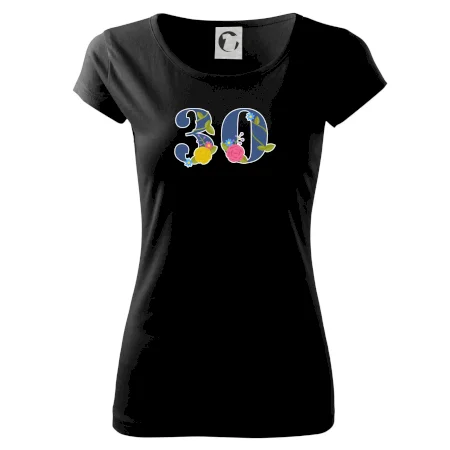 Narodeninové tričko pre oslávenca, ktorý oslavuje jubileum 30 rokov. Tričko, na ktorom je číslovka 30 s kvetmi. Darček k tridsiatym narodeninám.