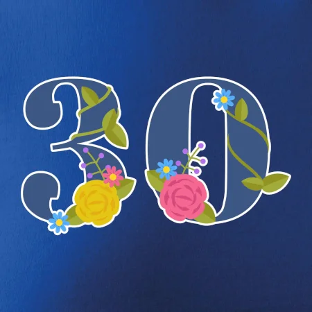 Narodeninové tričko pre oslávenca, ktorý oslavuje jubileum 30 rokov. Tričko, na ktorom je číslovka 30 s kvetmi. Darček k tridsiatym narodeninám.
