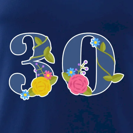 Narodeninové tričko pre oslávenca, ktorý oslavuje jubileum 30 rokov. Tričko, na ktorom je číslovka 30 s kvetmi. Darček k tridsiatym narodeninám.