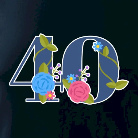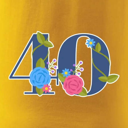 Narodeninové tričko pre oslávenca, ktorý oslavuje jubileum 40 rokov. Tričko, na ktorom je číslovka 40 s kvetmi. Darček k štyridsiatym narodeninám.