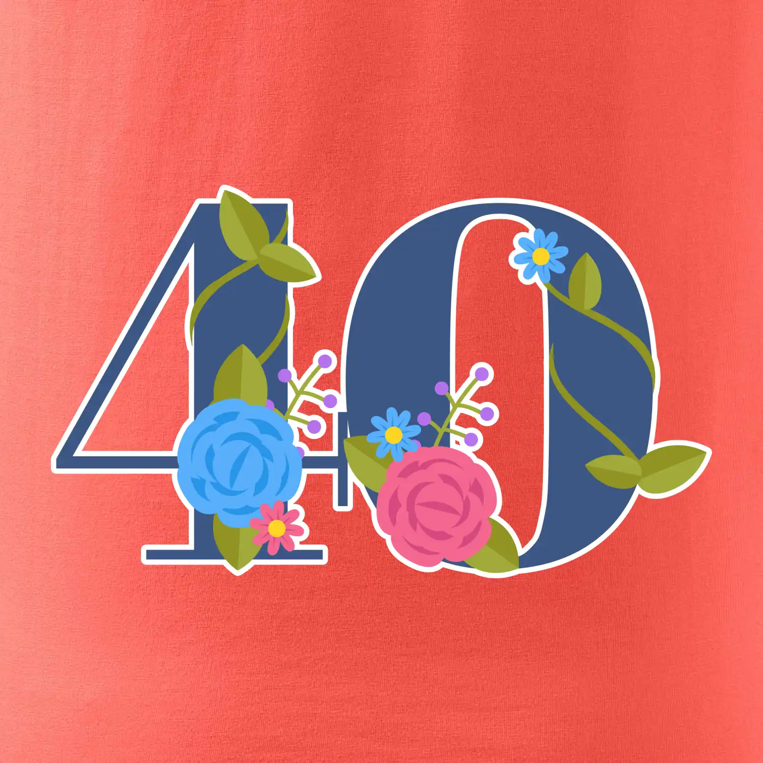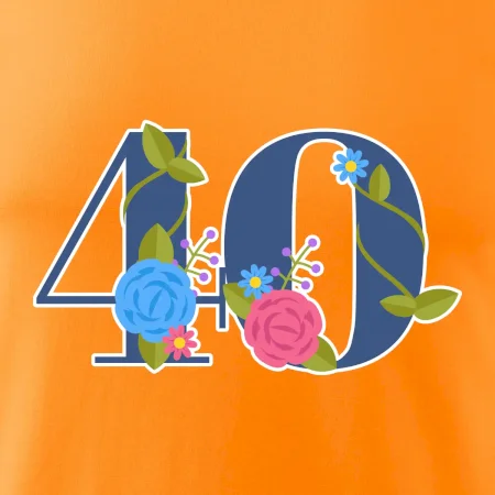 Narodeninové tričko pre oslávenca, ktorý oslavuje jubileum 40 rokov. Tričko, na ktorom je číslovka 40 s kvetmi. Darček k štyridsiatym narodeninám.