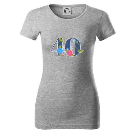 Narodeninové tričko pre oslávenca, ktorý oslavuje jubileum 40 rokov. Tričko, na ktorom je číslovka 40 s kvetmi. Darček k štyridsiatym narodeninám.