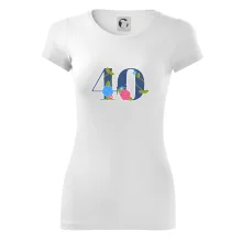 Narodeninové tričko pre oslávenca, ktorý oslavuje jubileum 40 rokov. Tričko, na ktorom je číslovka 40 s kvetmi. Darček k štyridsiatym narodeninám.