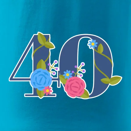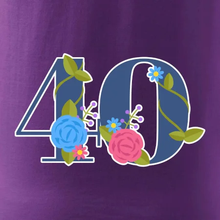 Narodeninové tričko pre oslávenca, ktorý oslavuje jubileum 40 rokov. Tričko, na ktorom je číslovka 40 s kvetmi. Darček k štyridsiatym narodeninám.