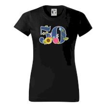Narodeninové tričko pre oslávenca, ktorý oslavuje jubileum 50 rokov. Tričko, na ktorom je číslovka 50 s kvetmi. Darček k päťdesiatym narodeninám.