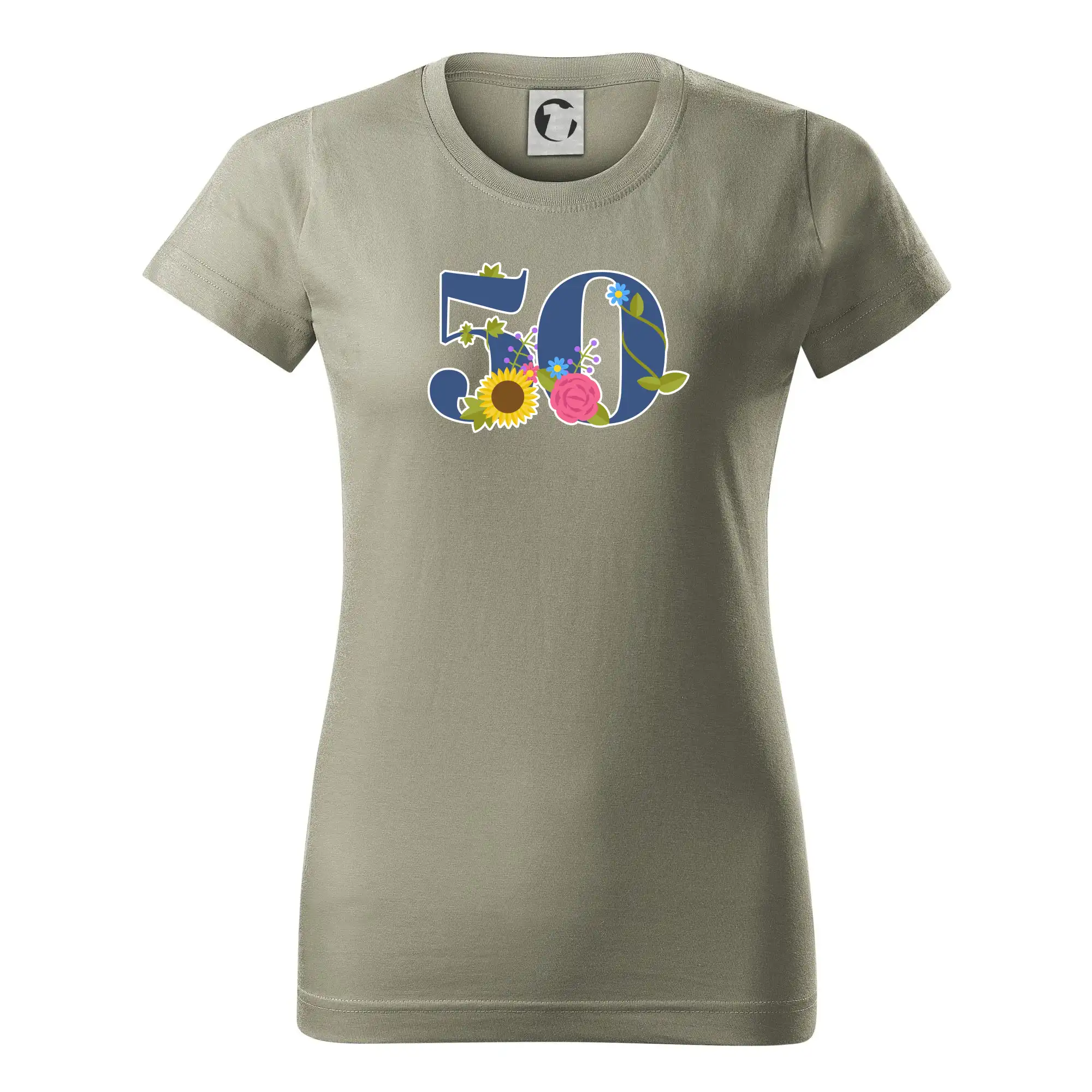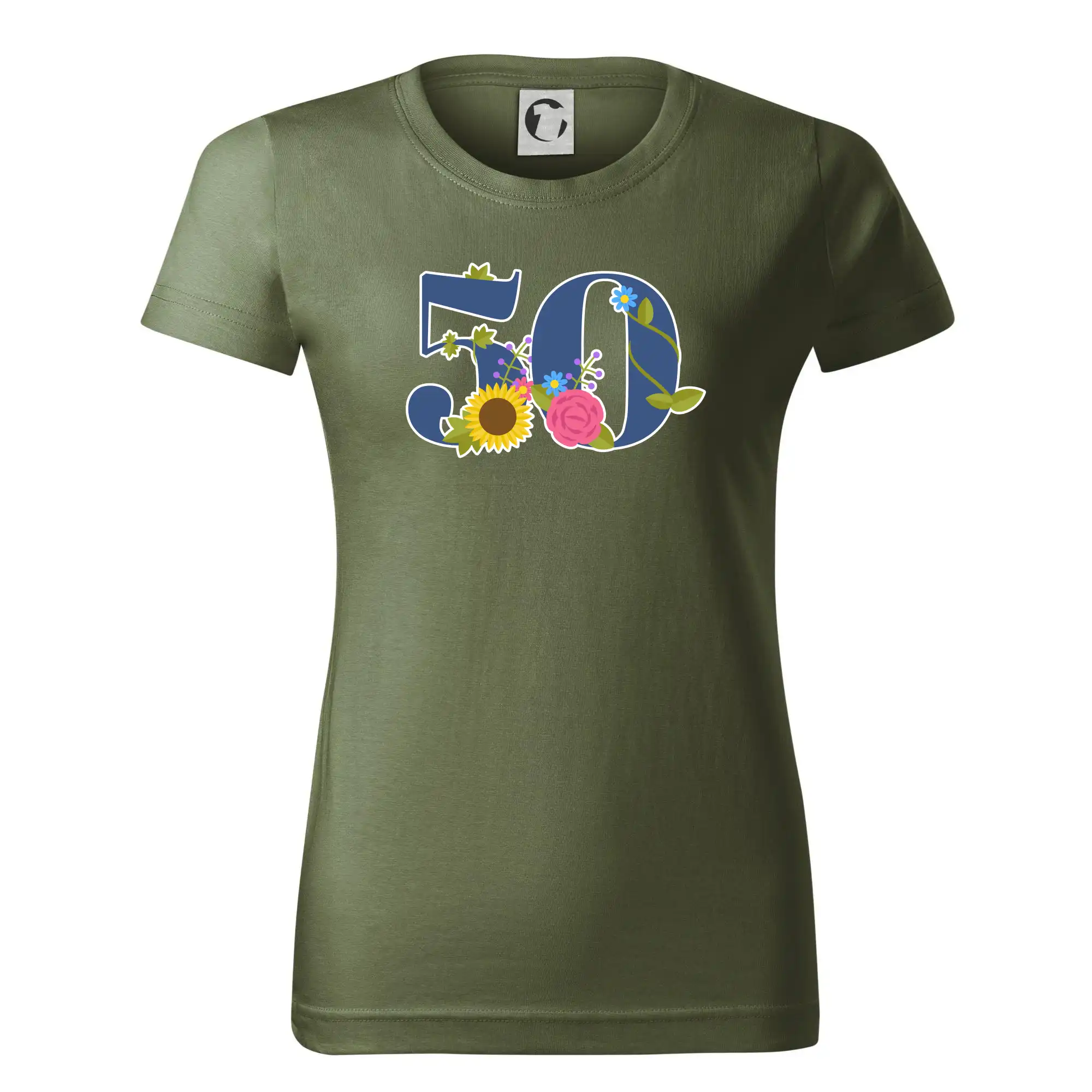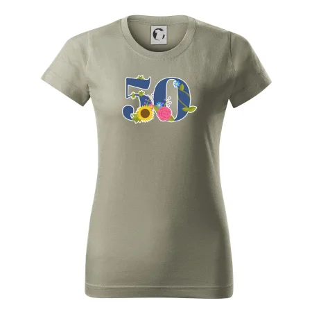 Narodeninové tričko pre oslávenca, ktorý oslavuje jubileum 50 rokov. Tričko, na ktorom je číslovka 50 s kvetmi. Darček k päťdesiatym narodeninám.