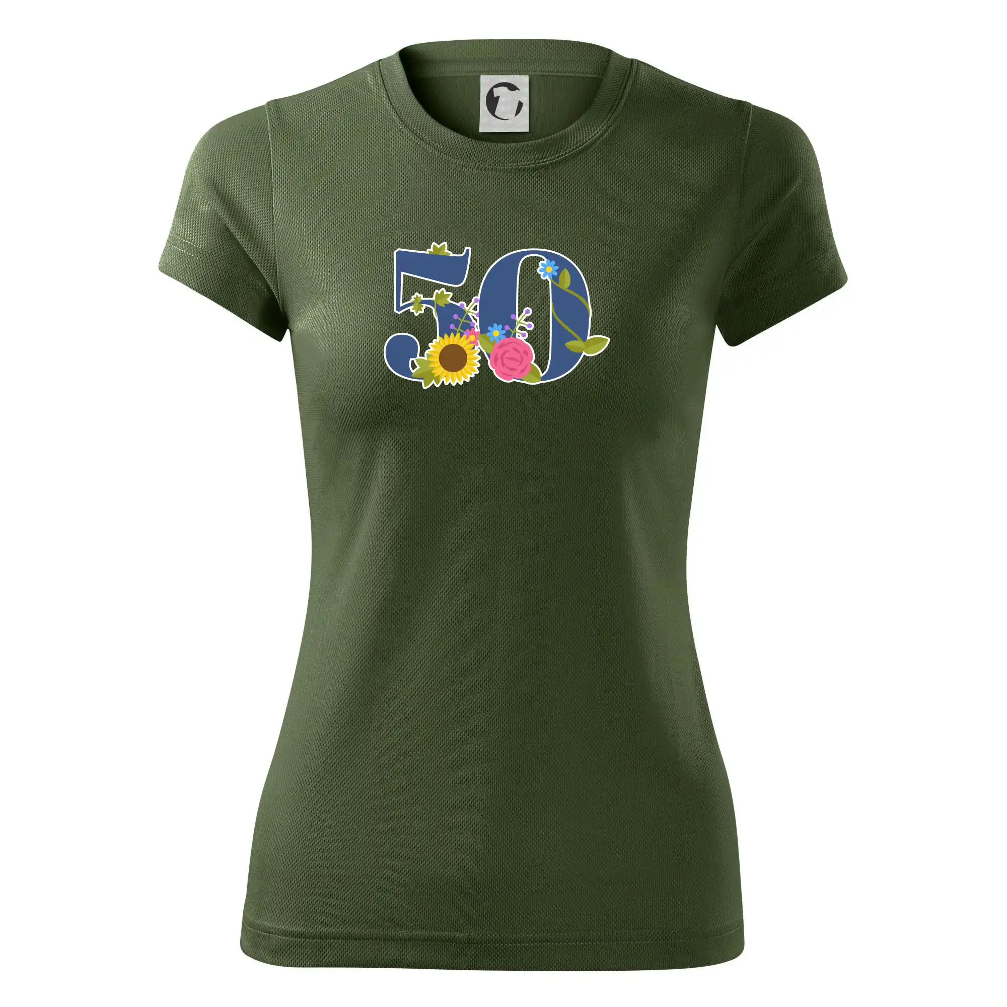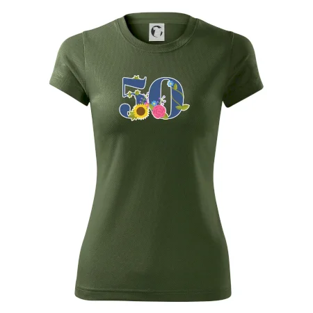 Narodeninové tričko pre oslávenca, ktorý oslavuje jubileum 50 rokov. Tričko, na ktorom je číslovka 50 s kvetmi. Darček k päťdesiatym narodeninám.