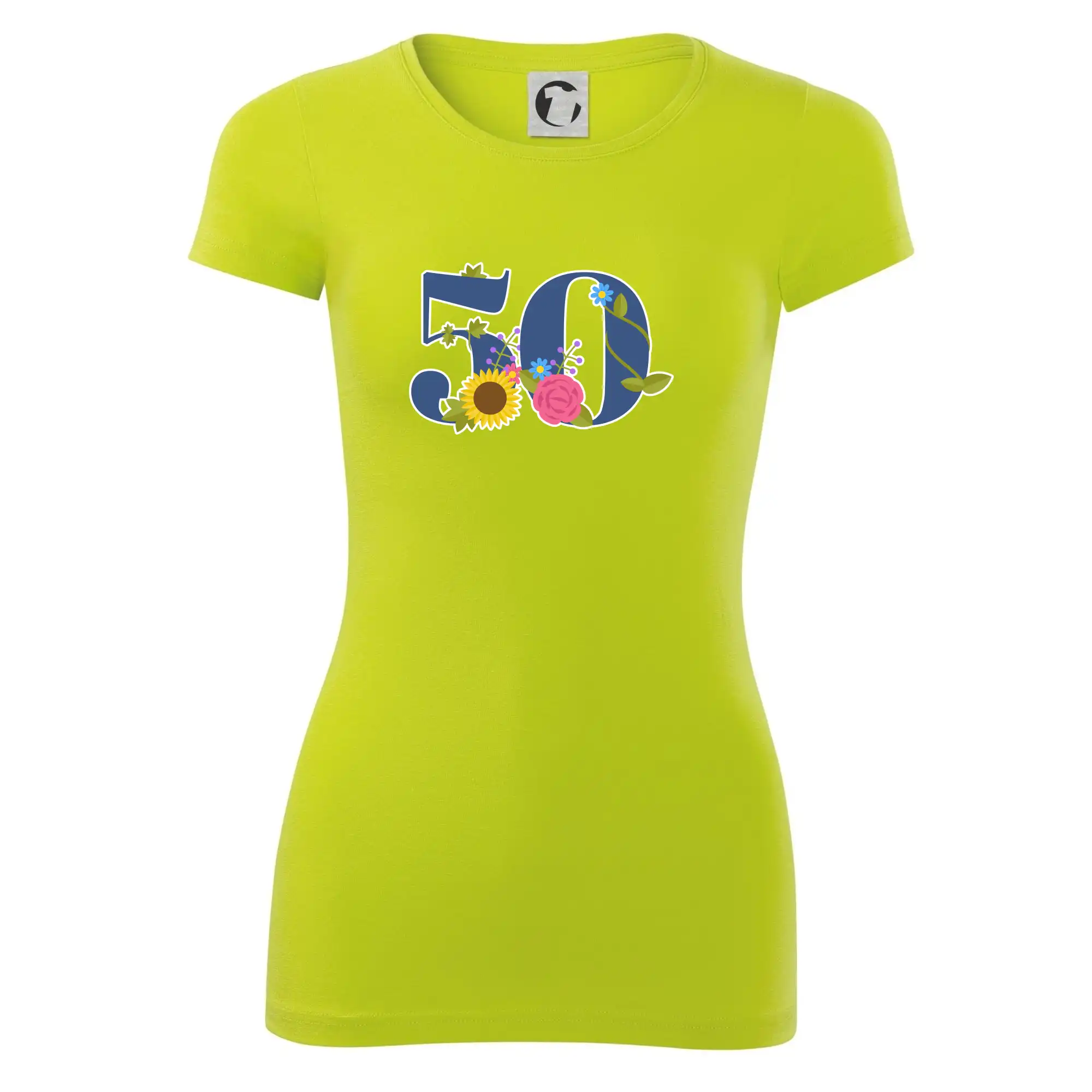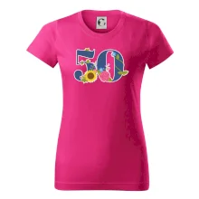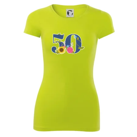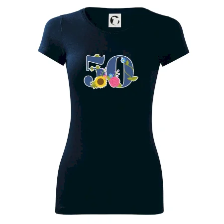 Narodeninové tričko pre oslávenca, ktorý oslavuje jubileum 50 rokov. Tričko, na ktorom je číslovka 50 s kvetmi. Darček k päťdesiatym narodeninám.