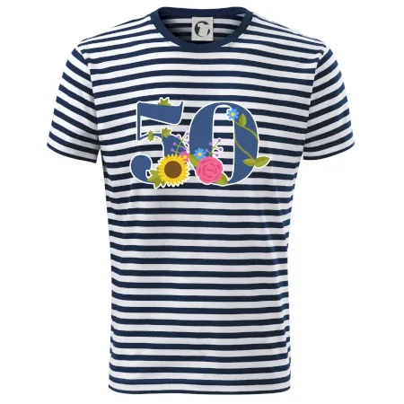 Narodeninové tričko pre oslávenca, ktorý oslavuje jubileum 50 rokov. Tričko, na ktorom je číslovka 50 s kvetmi. Darček k päťdesiatym narodeninám.