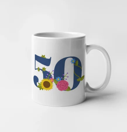Narodeninové tričko pre oslávenca, ktorý oslavuje jubileum 50 rokov. Tričko, na ktorom je číslovka 50 s kvetmi. Darček k päťdesiatym narodeninám.