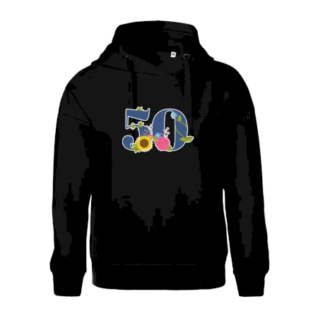 Narodeninové tričko pre oslávenca, ktorý oslavuje jubileum 50 rokov. Tričko, na ktorom je číslovka 50 s kvetmi. Darček k päťdesiatym narodeninám.