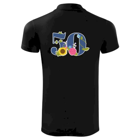 Narodeninové tričko pre oslávenca, ktorý oslavuje jubileum 50 rokov. Tričko, na ktorom je číslovka 50 s kvetmi. Darček k päťdesiatym narodeninám.
