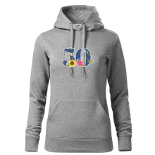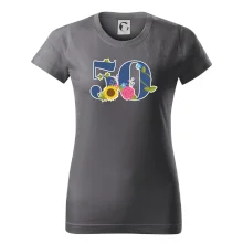 Narodeninové tričko pre oslávenca, ktorý oslavuje jubileum 50 rokov. Tričko, na ktorom je číslovka 50 s kvetmi. Darček k päťdesiatym narodeninám.