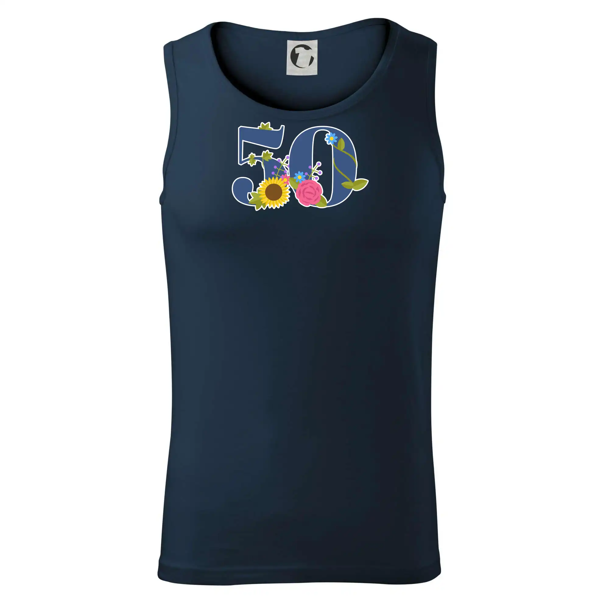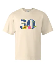 Narodeninové tričko pre oslávenca, ktorý oslavuje jubileum 50 rokov. Tričko, na ktorom je číslovka 50 s kvetmi. Darček k päťdesiatym narodeninám.