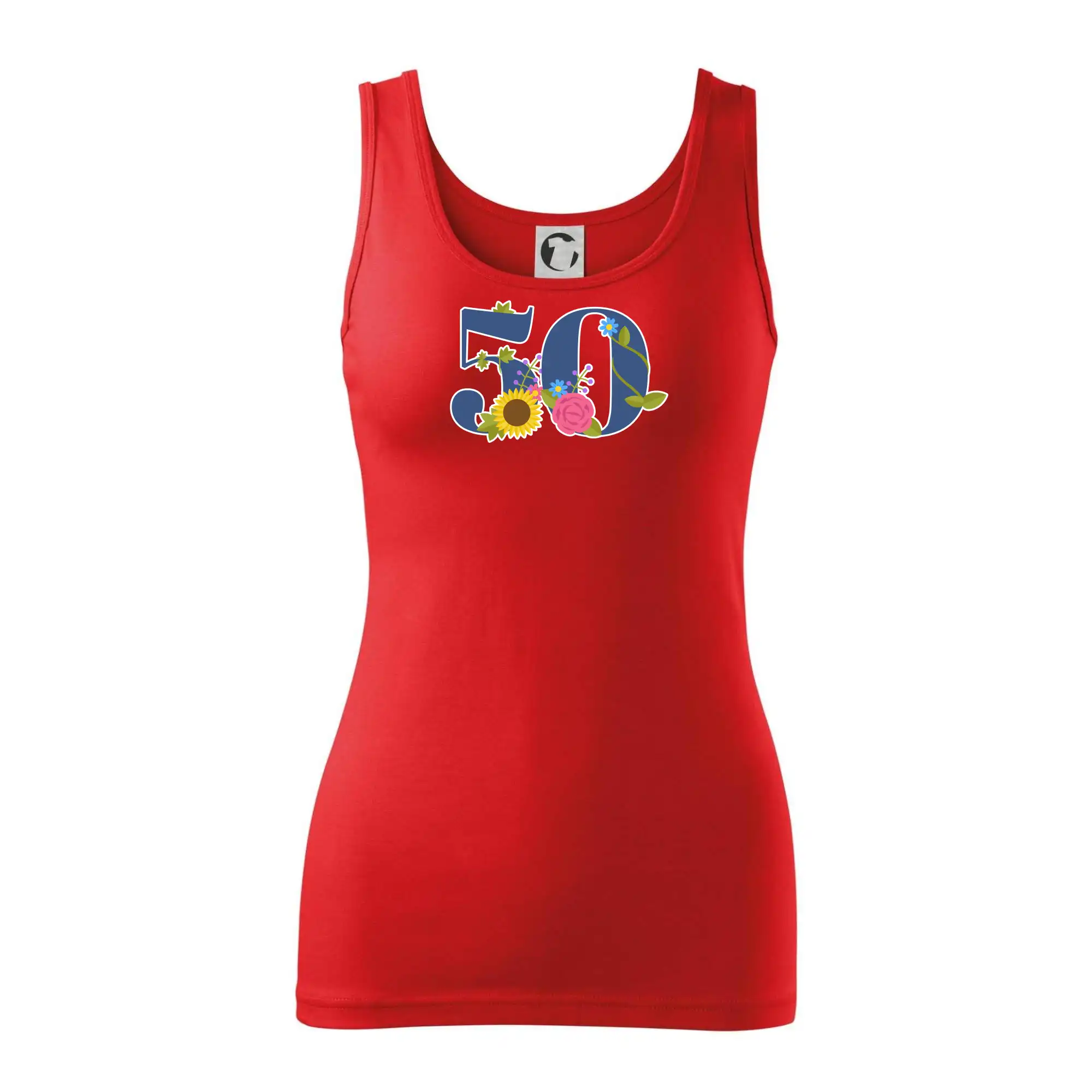 Narodeninové tričko pre oslávenca, ktorý oslavuje jubileum 50 rokov. Tričko, na ktorom je číslovka 50 s kvetmi. Darček k päťdesiatym narodeninám.