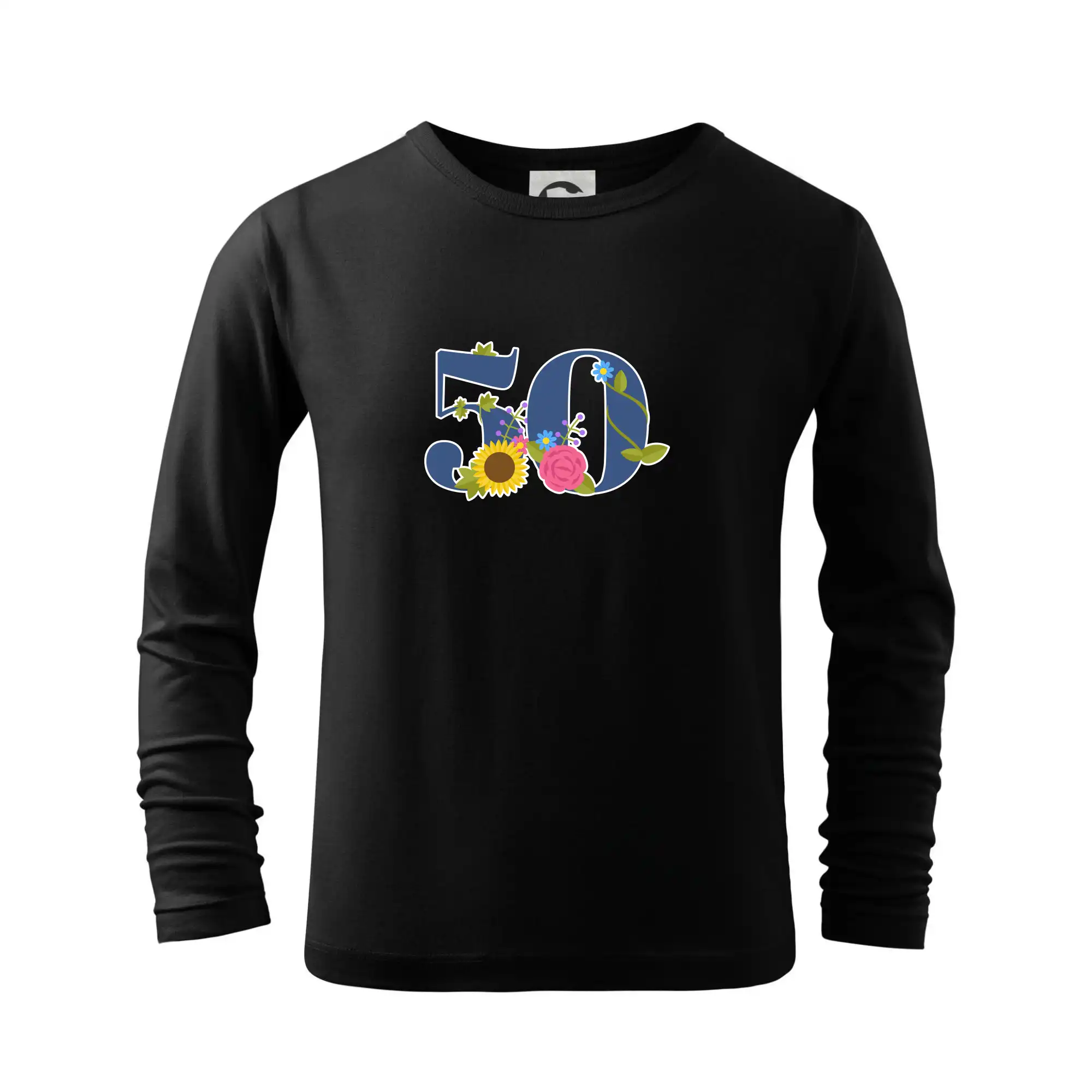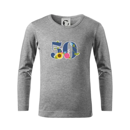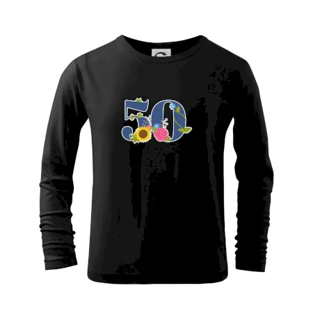 Narodeninové tričko pre oslávenca, ktorý oslavuje jubileum 50 rokov. Tričko, na ktorom je číslovka 50 s kvetmi. Darček k päťdesiatym narodeninám.