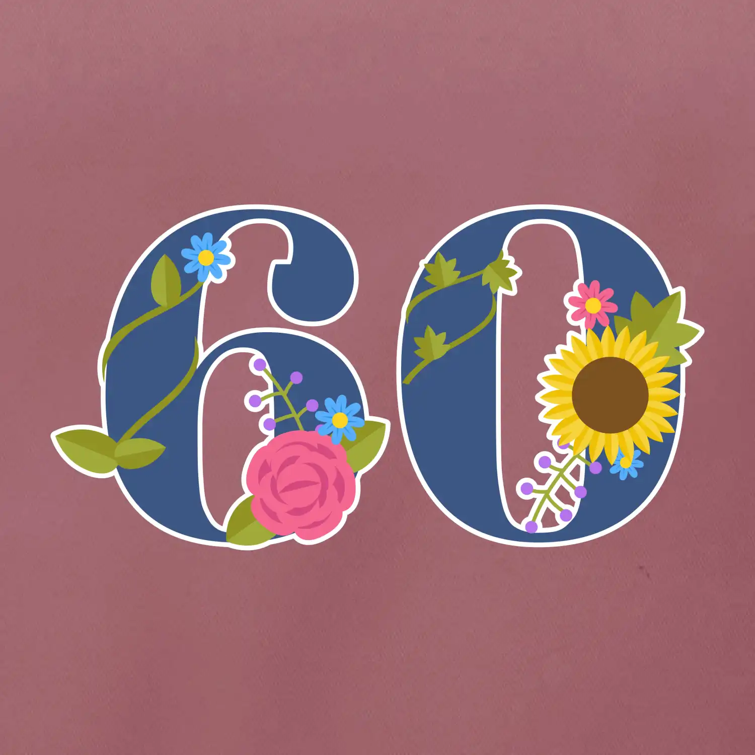 Narodeninové tričko pre oslávenca, ktorý oslavuje jubileum 60 rokov. Tričko, na ktorom je číslovka 60 s kvetmi. Darček k šesťdesiatym narodeninám.