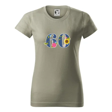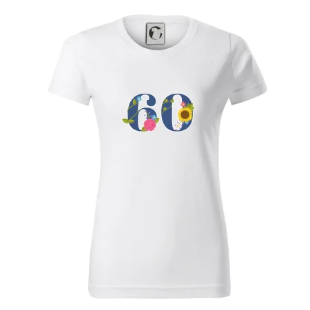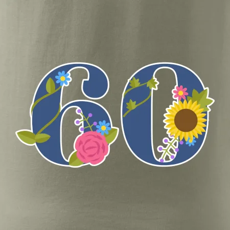 Narodeninové tričko pre oslávenca, ktorý oslavuje jubileum 60 rokov. Tričko, na ktorom je číslovka 60 s kvetmi. Darček k šesťdesiatym narodeninám.