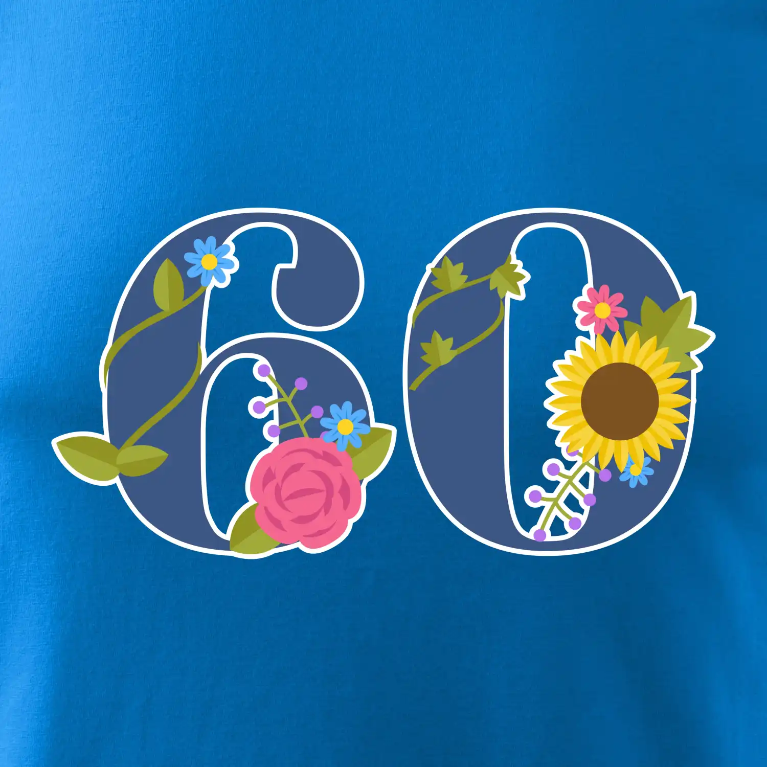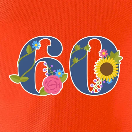 Narodeninové tričko pre oslávenca, ktorý oslavuje jubileum 60 rokov. Tričko, na ktorom je číslovka 60 s kvetmi. Darček k šesťdesiatym narodeninám.