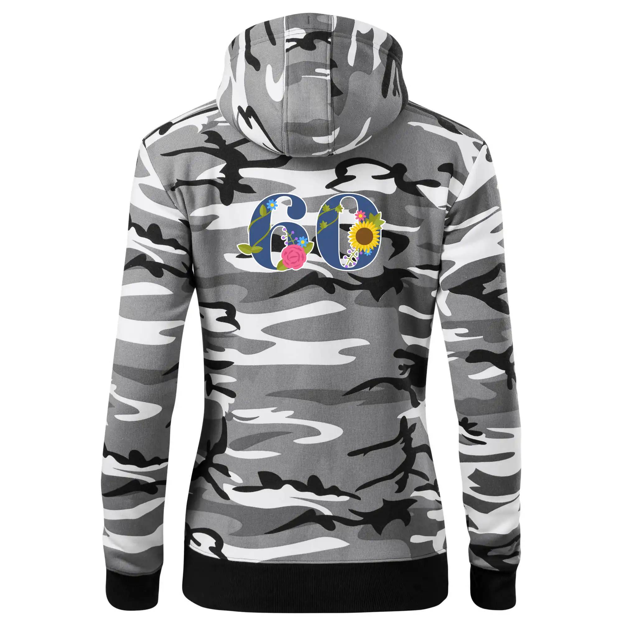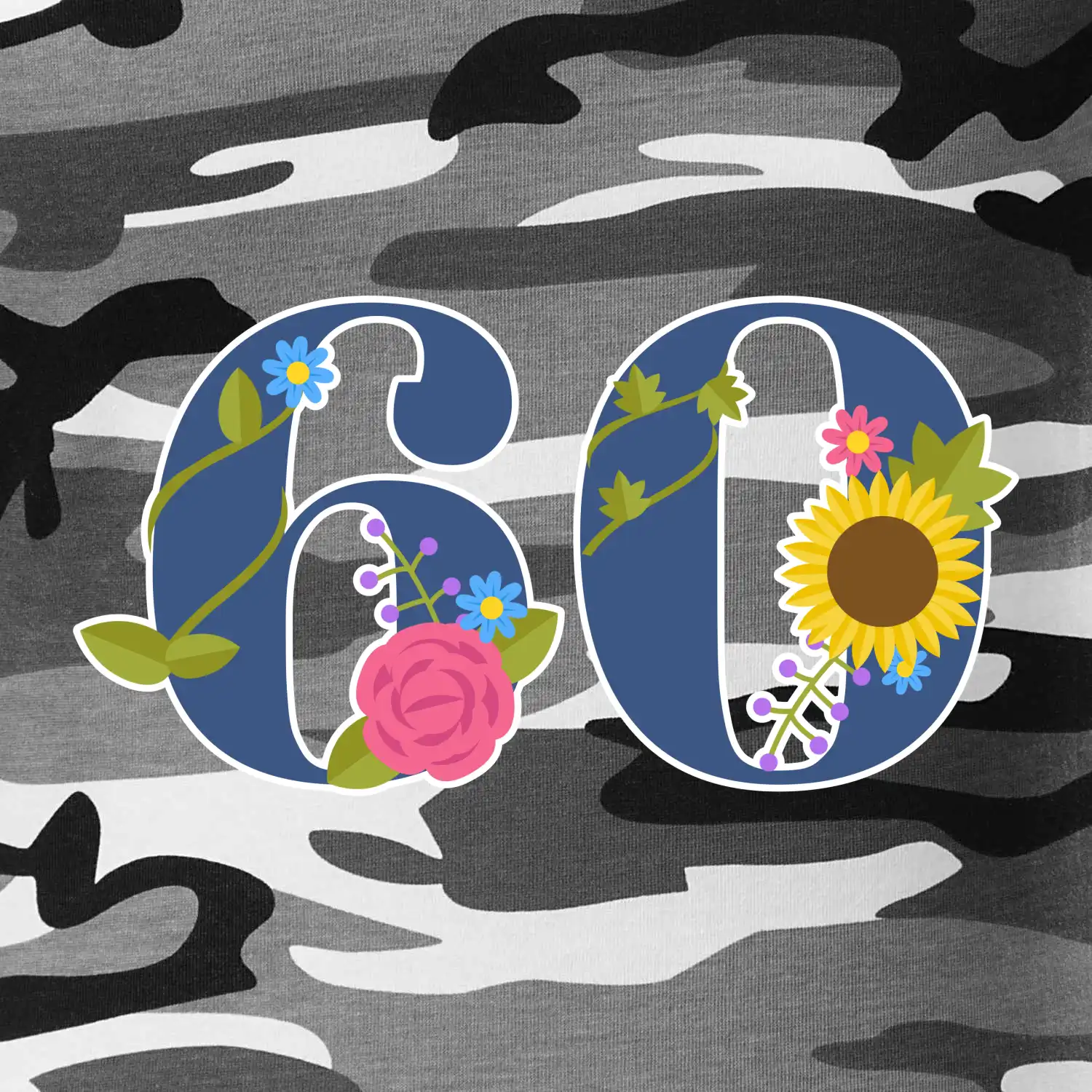 Narodeninové tričko pre oslávenca, ktorý oslavuje jubileum 60 rokov. Tričko, na ktorom je číslovka 60 s kvetmi. Darček k šesťdesiatym narodeninám.