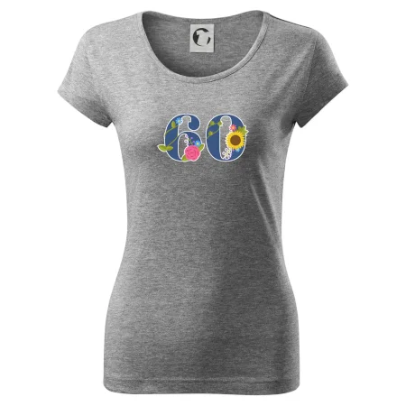 Narodeninové tričko pre oslávenca, ktorý oslavuje jubileum 60 rokov. Tričko, na ktorom je číslovka 60 s kvetmi. Darček k šesťdesiatym narodeninám.